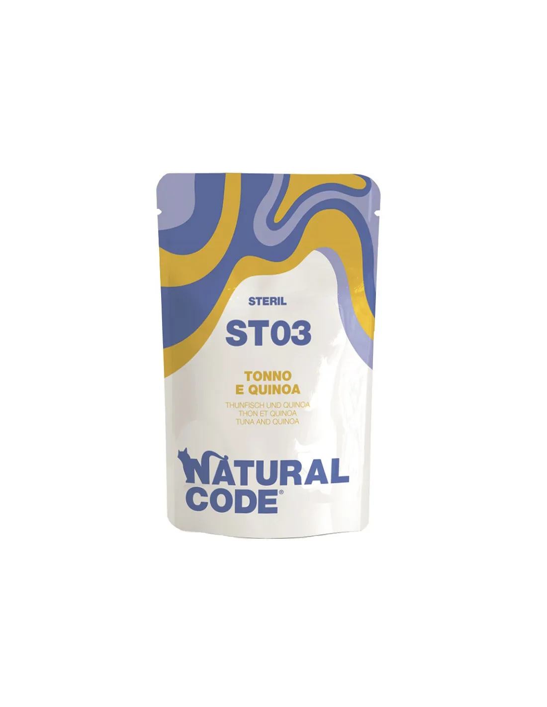 Natural Steril 03 ist ein Alleinfuttermittel für Katzen mit einer Kombination aus Thunfisch und Quinoa, das speziell für sterilisierte Katzen entwickelt wurde. Mit einem Gewicht von 70 Gramm bietet diese ausgewogene Formel eine optimale Nährstoffaufnahme, um ein gesundes Gewicht zu halten und die allgemeine Gesundheit Ihrer Katze zu fördern.