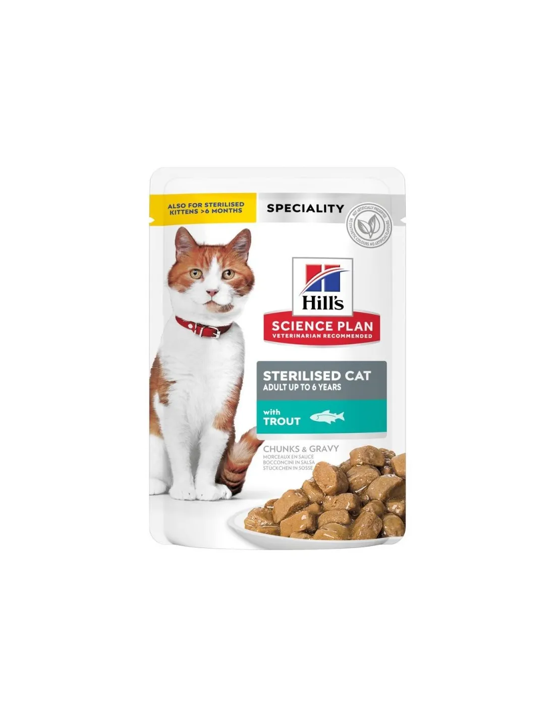 Hill's Science Plan Young Adult Sterilised Cat Katzenfutter mit Forellenbeutel ist sicher für die Verwendung bei sterilisierten jungen erwachsenen Katzen. Es wurde mit hochwertigen, leicht verdaulichen Inhaltsstoffen formuliert, um maximale Sicherheit und gesundheitliche Vorteile für Ihr Haustier zu gewährleisten.