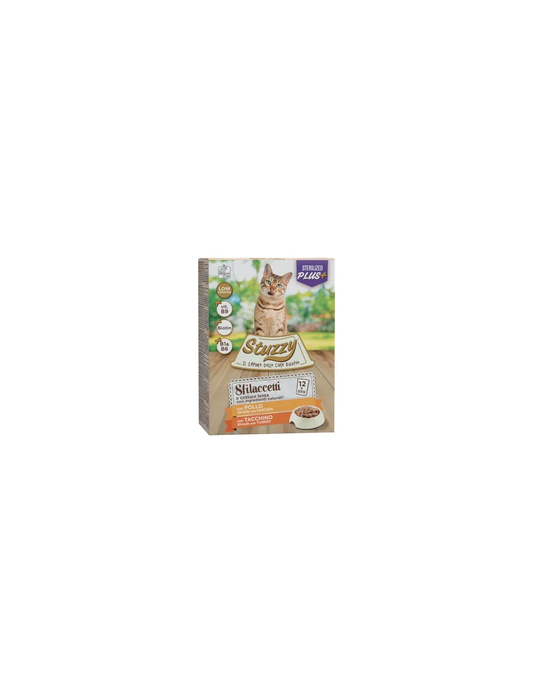 Stuzzy Cat – Sterilisierte Sfilaccetti mit Huhn und Truthahn ist ein Alleinfuttermittel für Katzen, das aus natürlichen Zutaten zubereitet und langsam gekocht wird, was den Geschmack verstärkt. Dieses Produkt ist ideal für sterilisierte Katzen und sorgt für eine ausgewogene Versorgung mit essentiellen Nährstoffen.