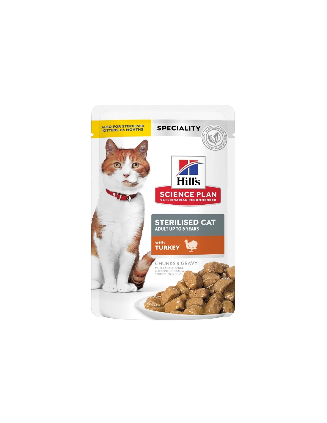 SP Feline Adult Sterilised Turkey wurde speziell auf seine hohe Verträglichkeit bei sterilisierten Katzen getestet, einer Kategorie, die besonders empfindlich auf Ernährungsumstellungen reagiert. Die systematische Verwendung hochwertiger Inhaltsstoffe, der Verzicht auf schädliche künstliche Konservierungsstoffe und die sorgfältige Auswahl der Proteinquellen garantieren ein sehr geringes Risiko unerwünschter Wirkungen. Dank der weichen und leicht kaubaren Textur ist es auch für ältere Menschen oder Menschen mit unvollständigen Zähnen geeignet. Alle Bestandteile des Rezepts wurden unter Berücksichtigung der Verdaulichkeit und biologischen Sicherheit ausgewählt, unter Berücksichtigung der Hygiene- und Ernährungsstandards.