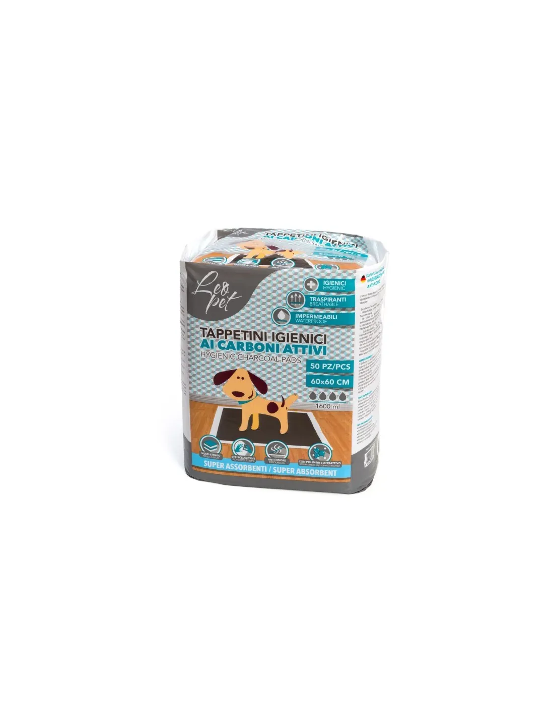 Leopet Aktivkohle-Absorptionsmatten für Hunde 60 x 60 – 50 Stück sind die ideale Lösung für die Aufrechterhaltung der Hygiene zu Hause, wenn Sie Haustiere haben, die aus gesundheitlichen Gründen, Alter oder anderen Umständen längere Zeit im Haus bleiben müssen. Diese Matten sind so konzipiert, dass sie eine hervorragende Saugfähigkeit bieten und Gerüche effektiv neutralisieren.