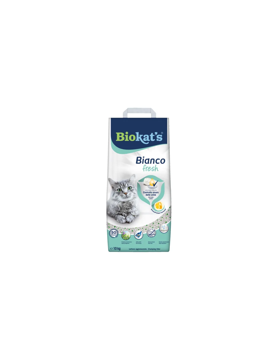 Biokat's Bianco Fresh is a 10kg natural clay cat litter. This clumping litter is designed to form clumps when in contact with liquids, effectively retaining both liquids and unpleasant odours. It is a high quality product that provides a clean and fresh environment for your cat.