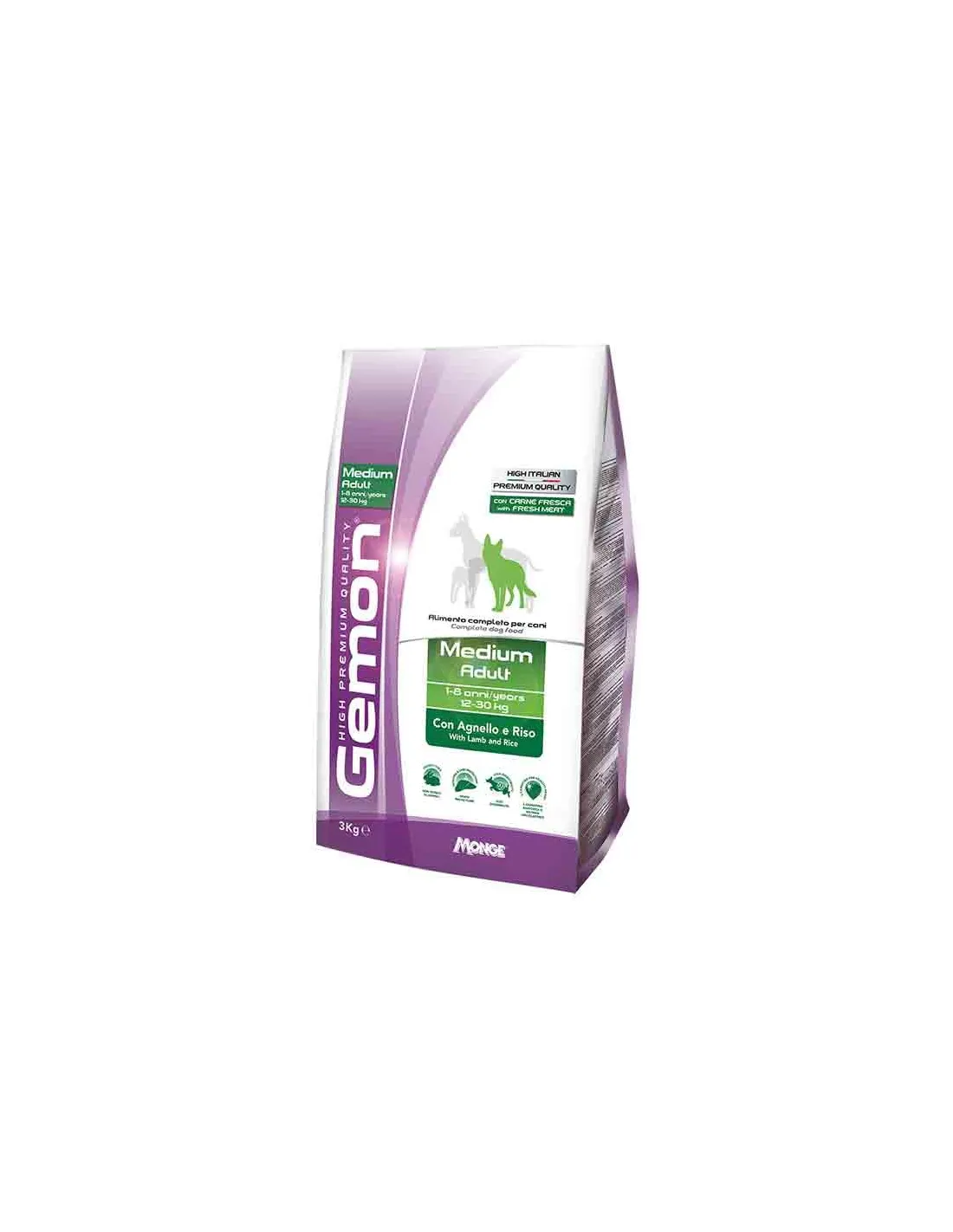Complete food designed for the daily nutrition of medium-sized adult dogs. Contains lamb meat, light and highly digestible. Its formula has a hepato-protective function. Gemon high premium quality is the new line of foods with the highest quality raw materials, dedicated to the daily well-being of your dog. Special products, formulated with precious elements, rich in proteins, vitamins and mineral salts essential to feed your faithful friend every day and to guarantee its healthy and balanced growth over time. The recipes are available by size, weight of the animal, lifestyle and age and are able to guarantee all the most specific nutritional needs. Gemon high premium quality croquettes contain fresh meat, are guaranteed made in Italy and no cruelty test.