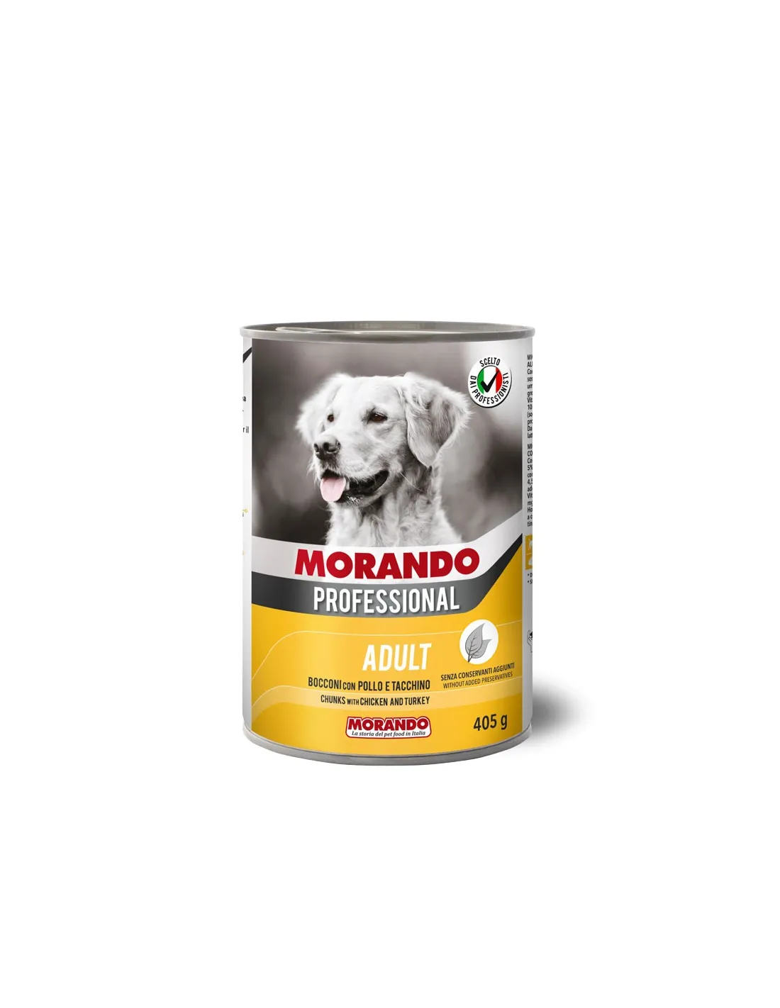 "Biglior Cane Professional - Adult Chunks Chicken and Turkey 405g" is a complete and balanced food for adult dogs, formulated to provide excellent nutrition. The recipe is easily digestible and highly palatable, ideal for meeting your dog's daily needs.