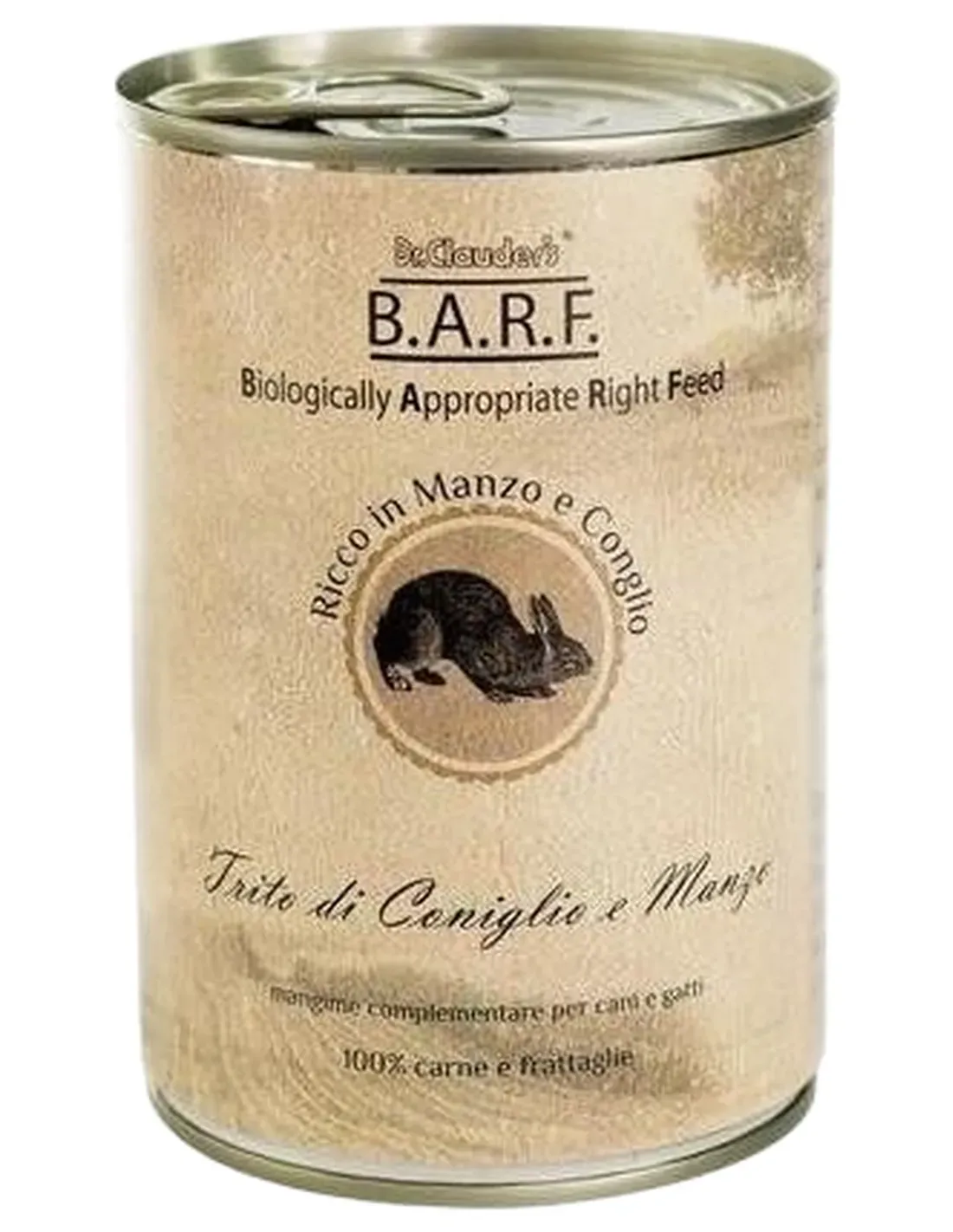 Animal by-products: beef (heart, liver, lung, tripe) (56.5%), rabbit (heart, liver) (43.5%)