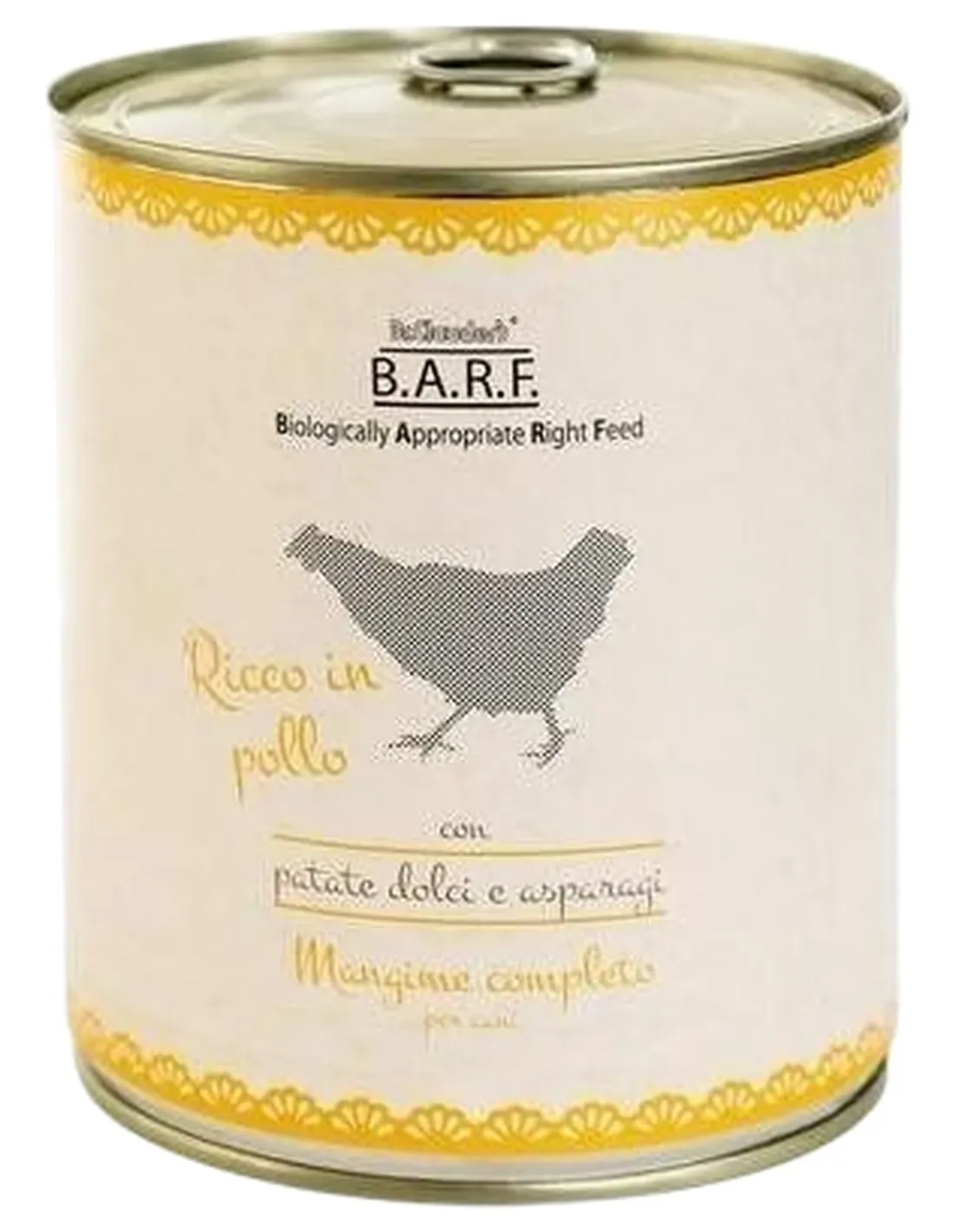 Animal by-products: Chicken (heart, muscle, liver, stomach and neck) (80%), carrots (5%), asparagus (5%), sweet potatoes (5%), amaranth (3%), minerals (1%), fish oil (cod liver oil) (0.5%),