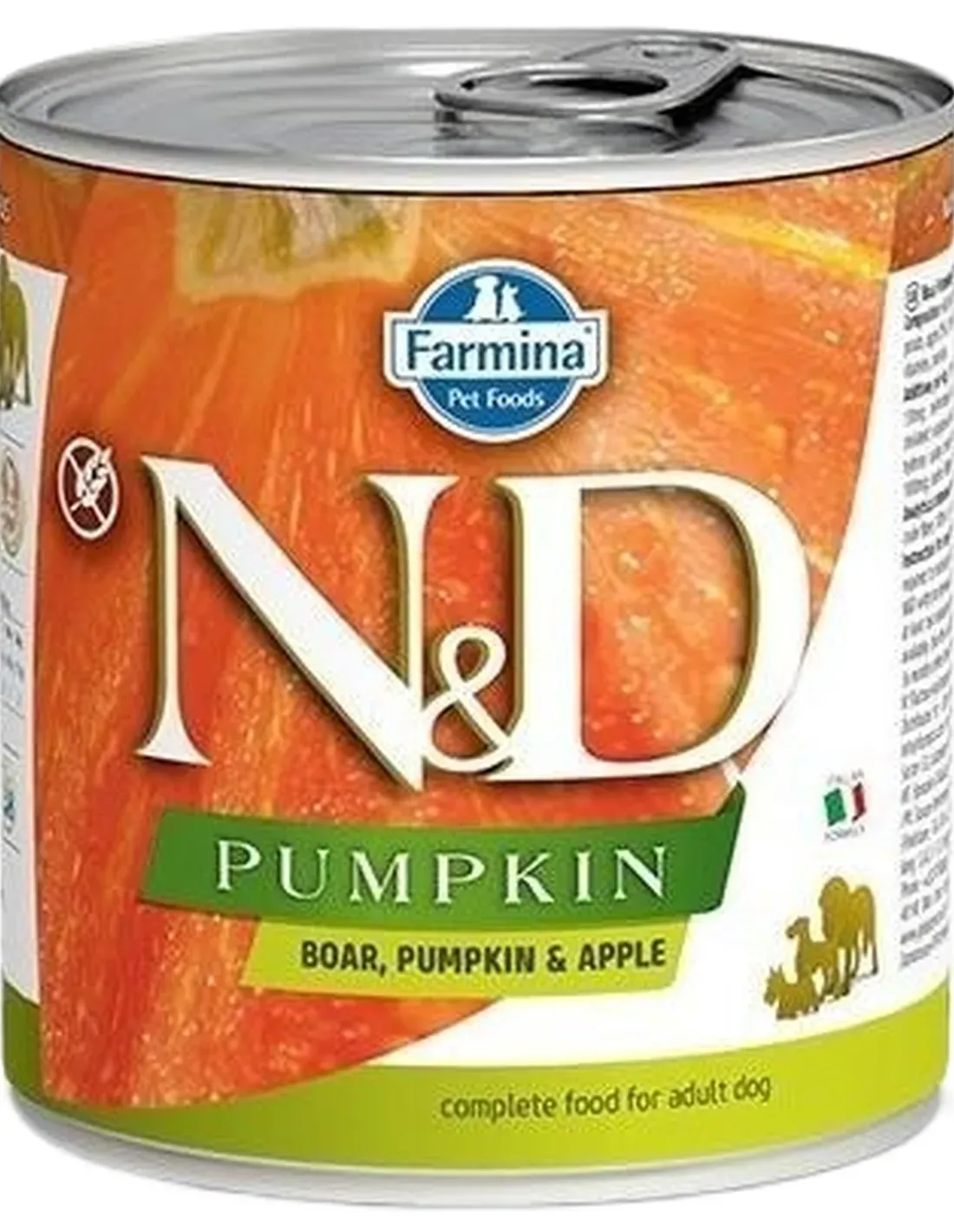 Farmina N&D Pumpkin adult wild boar pumpkin and apple 285 g is a complete food for adult dogs.