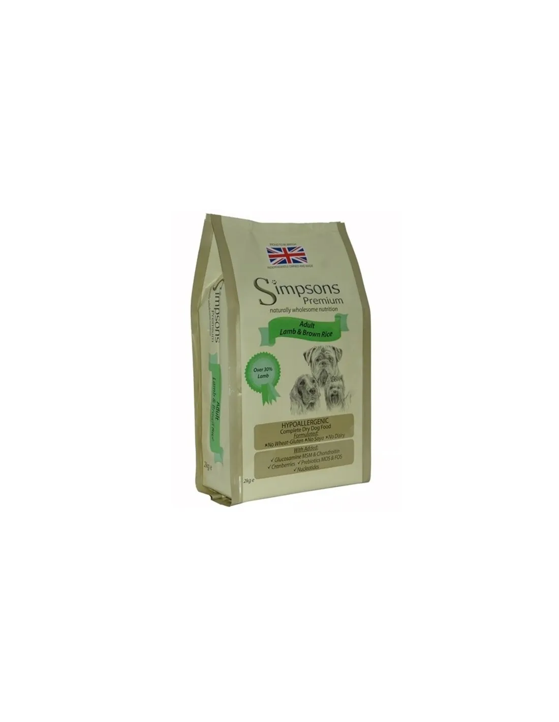 The Simpsons Premium adult lamb and brown rice kibbles, here in a 2 kg pack, are ideal for adult dogs of all sizes and have premium ingredients.