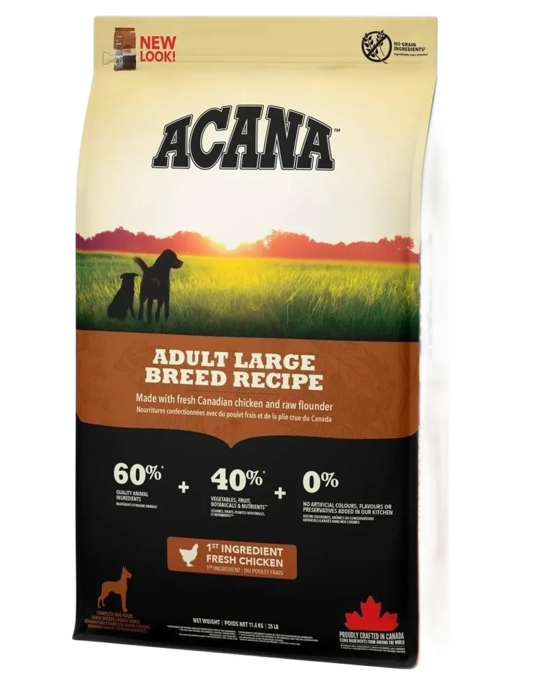 Joints are often under a lot of stress in large breed dogs. ACANA Adult Large Breed Recipe is rich in animal protein sources to promote lean muscle mass and minimize stress on bones and joints.
