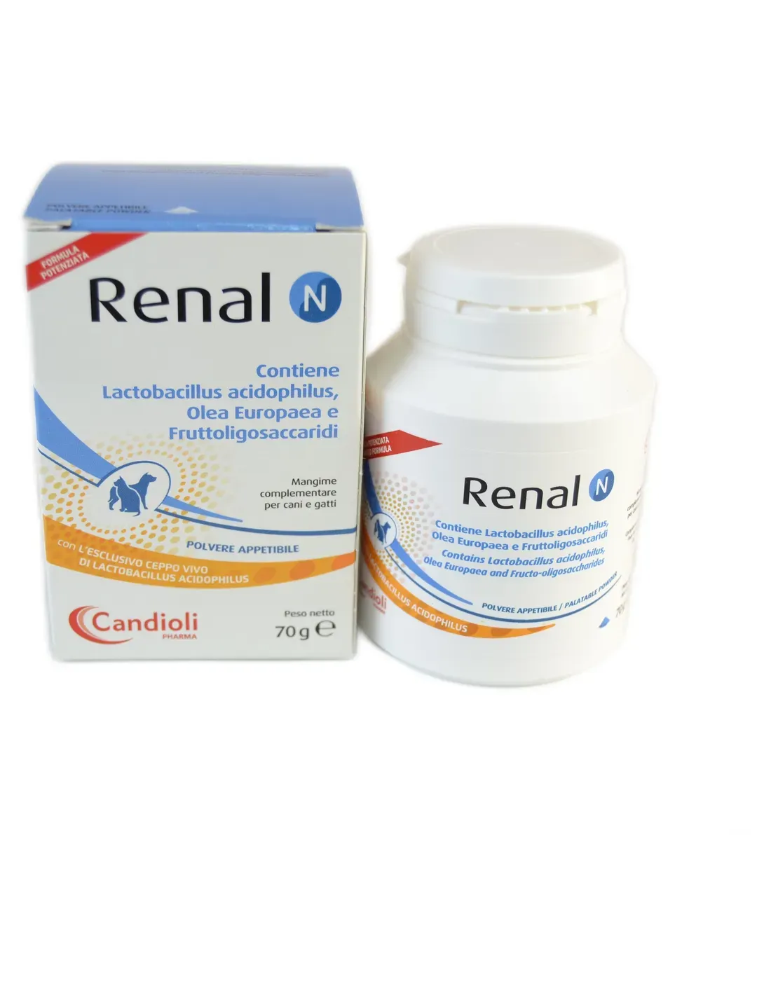 Renal n provides fructo-oligosaccharides, olive oil polyphenols, enterococcus faecium and vitamins which help maintain normal metabolism and proper intestinal function.