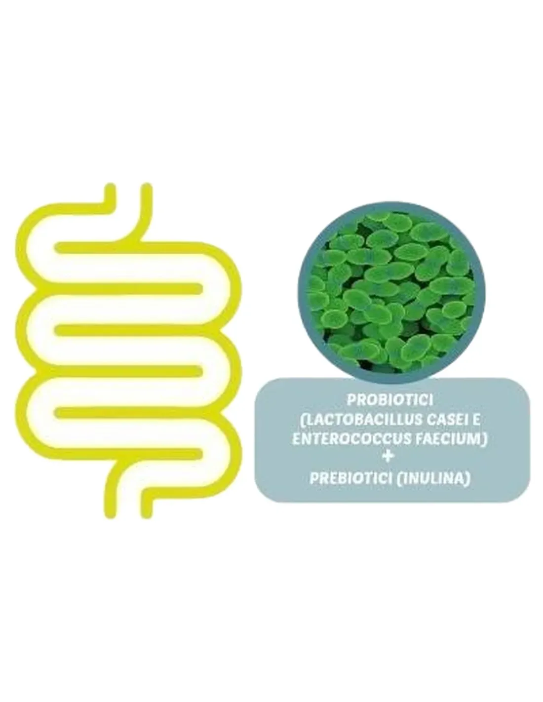 Complementary dietary feed for dogs and cats intended for particular nutritional purposes. Indicated for the stabilization of physiological digestion. Useful in case of risk of digestive disorders and periods in which these disorders are present. With Lactobacillus Casei and stabilizer of the intestinal flora Enterococcus Faecium.