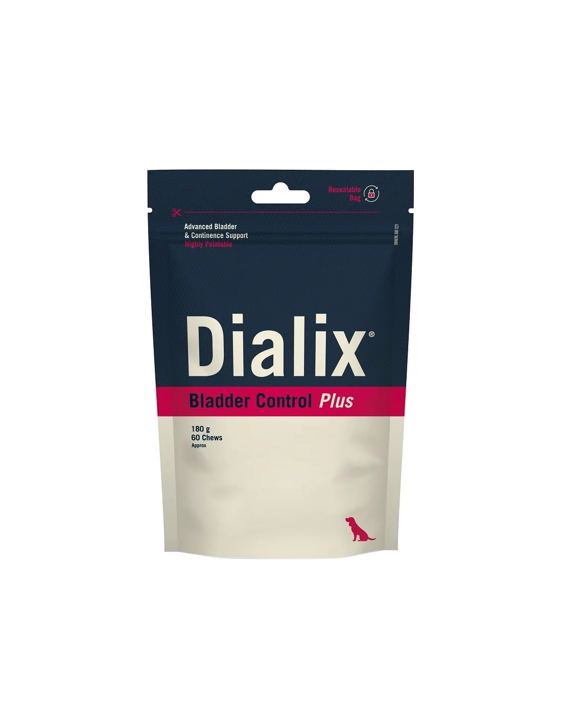 Dialix Bladder Control Plus 60 tablets is indicated in animals that present recurrent episodes of urinary incontinence on a functional basis, especially attributable to the weakening of the urinary sphincter. This can occur both in elderly subjects, in sterilized subjects, and in those subjected to particular stressful or physiological conditions that lead to temporary loss of urination control. The product can also be used as a support in post-operative recovery from urinary tract operations and as a complement in cases of hypotonic bladder. It is particularly useful for improving the quality of life of animals that experience involuntary dripping of urine during rest or under certain stress conditions, promoting continence and the general well-being of the animal.