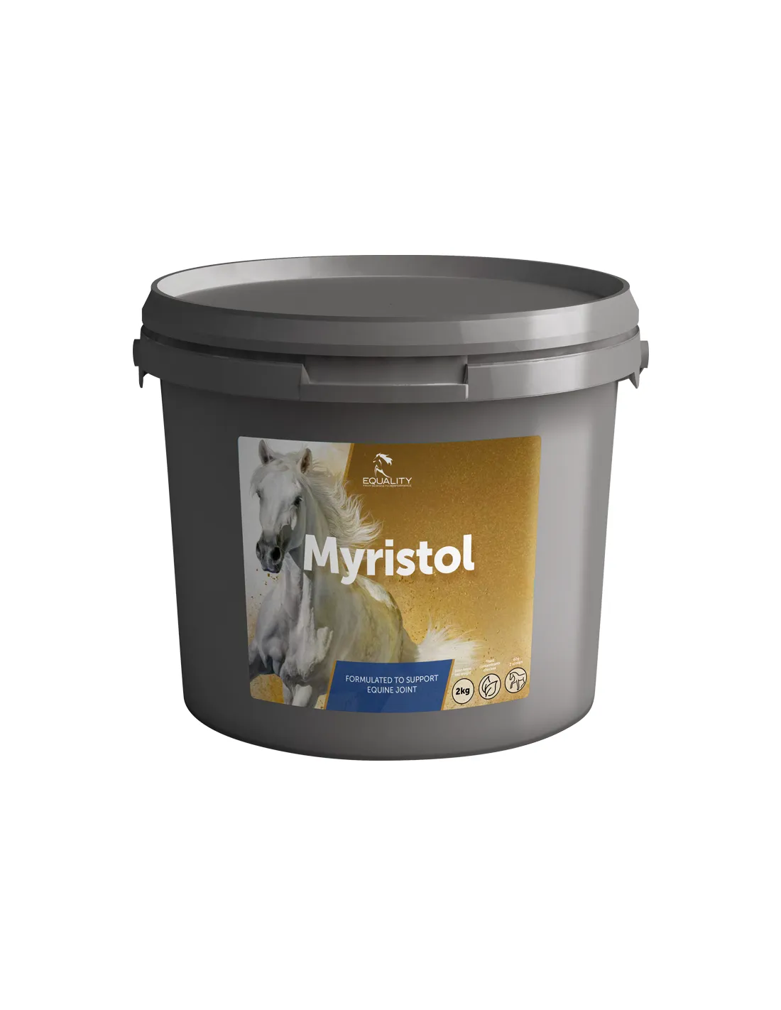 Myristol is an excellent supplement for horses, effective for all joint problems. Contains MSM, hydrolyzed collagen, glucosamine hydrochloride and PEA: four key elements for joints with just one simple administration. Useful for dealing with both degenerative and traumatic joint problems The main ingredients of Myristol are: PEA: fatty acid amide Glucosamine: gives the cartilage strength to counteract compressive forces MSM: source of sulfur Hydrolysed collagen: positive action on the cartilage cells responsible for the synthesis of type II collagen Wheat, Alfalfa Flour, Sucrose