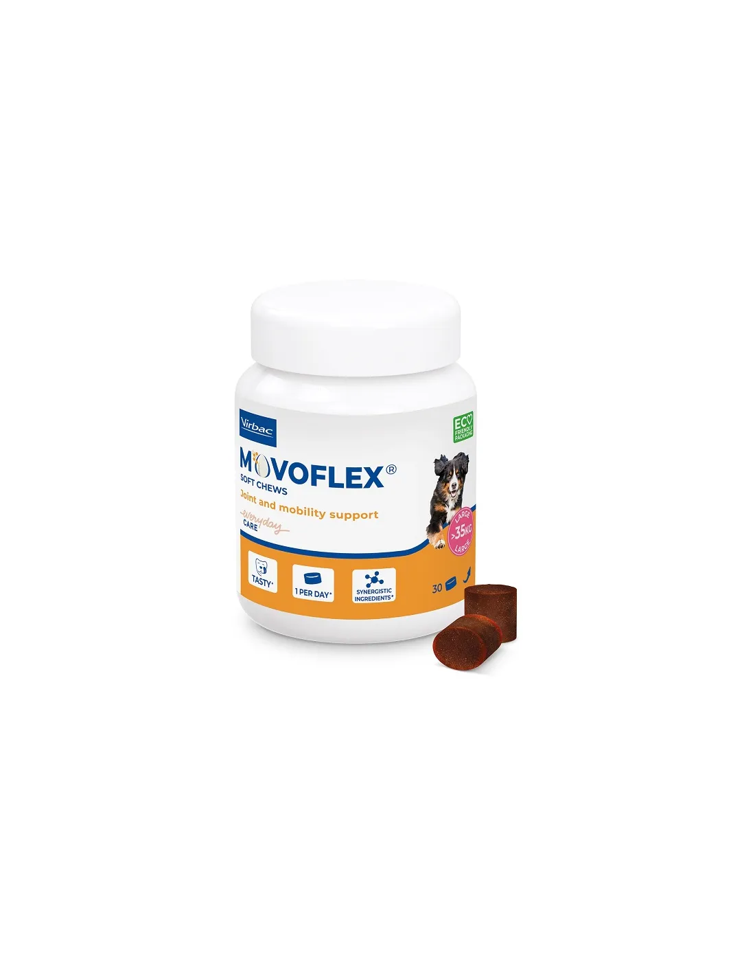 Movoflex L Virbac is a food supplement in tablets designed to support joint mobility and musculoskeletal well-being in dogs.