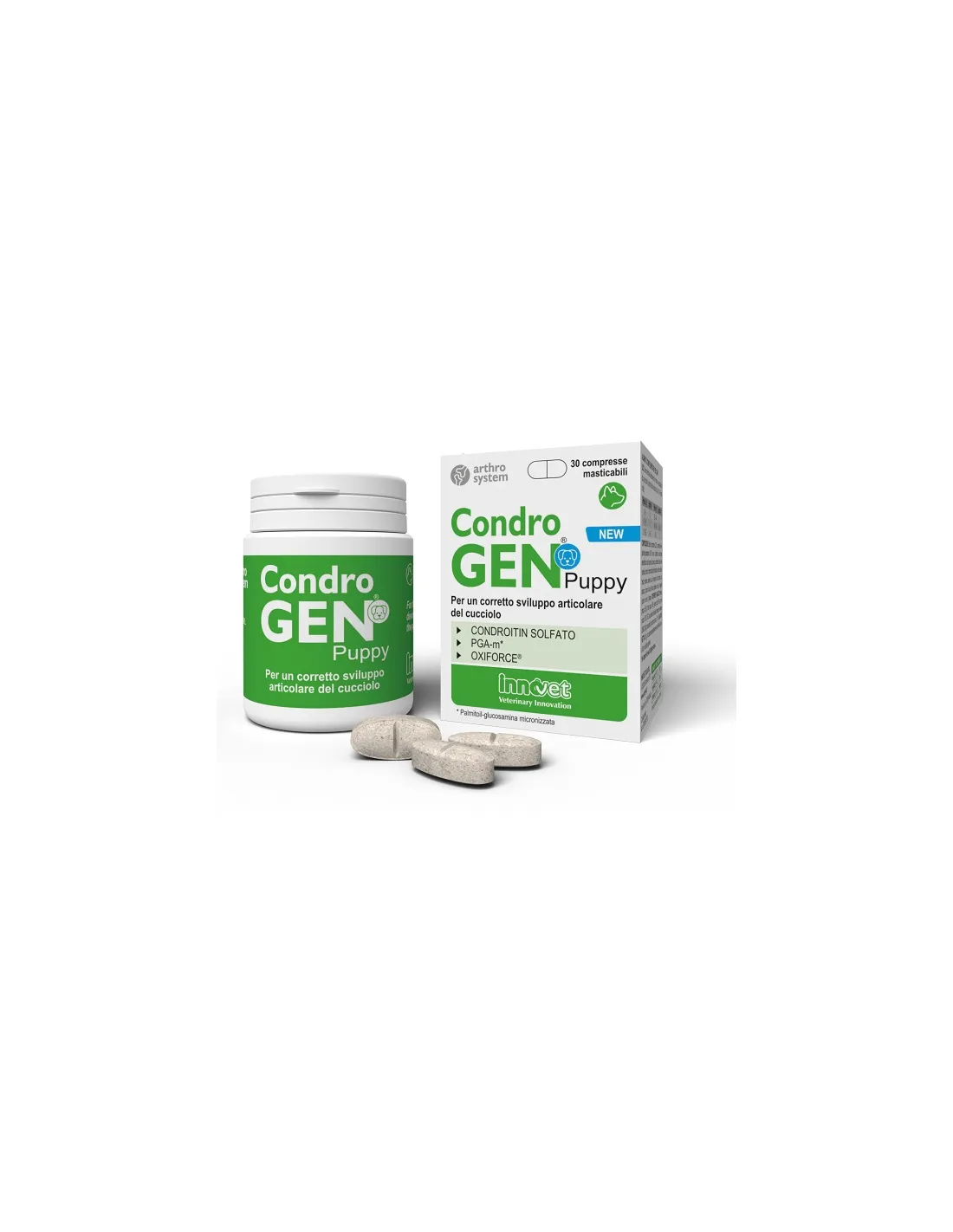 Condrogen® Puppy is a complementary food in chewable tablets indicated to guarantee correct joint development during the growth phase of puppies of large and giant breeds.