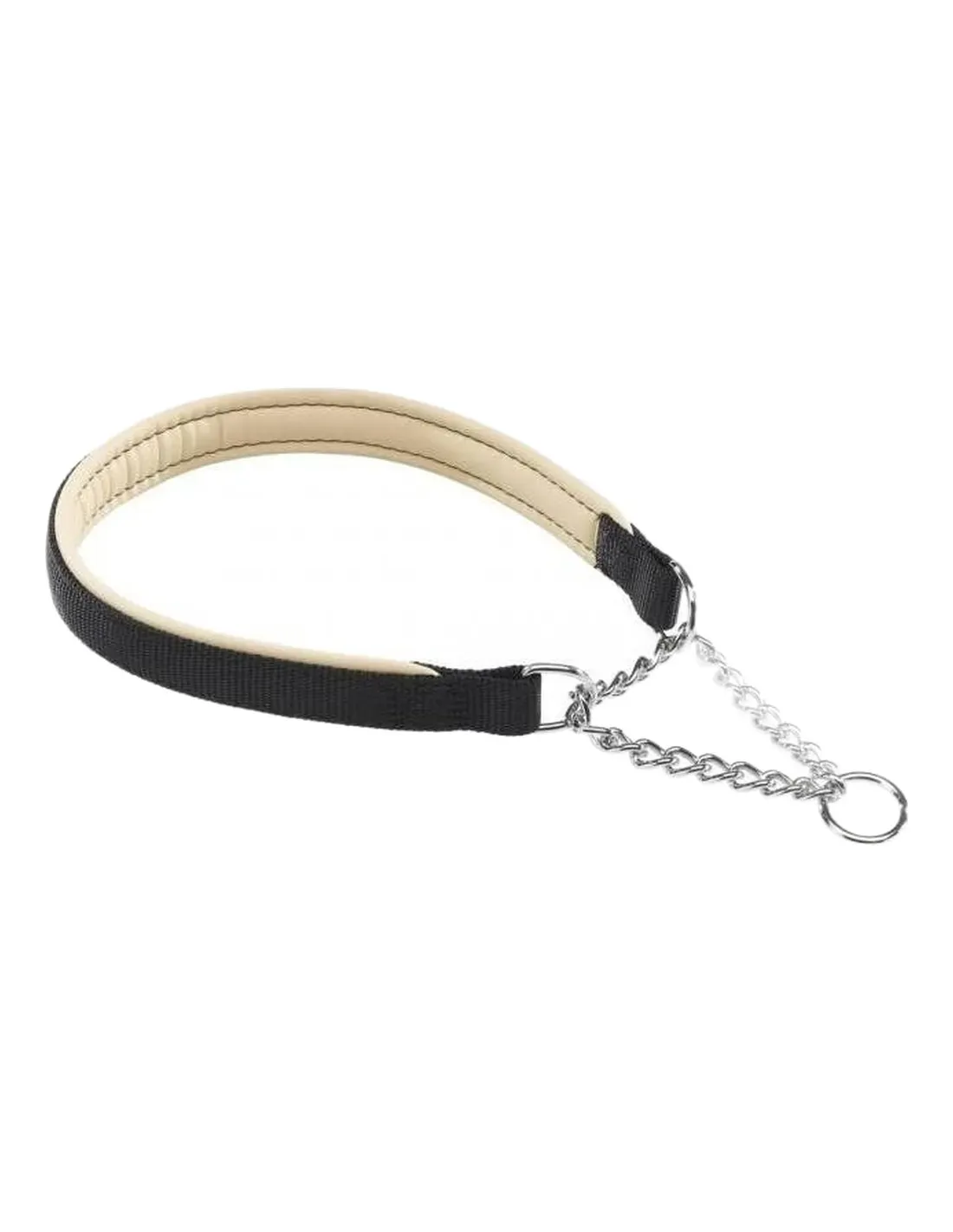 The Ferplast Daytona model css15/40 semi-choke collar in black combines a padded nylon band with a metal correction chain. Unlike the full choke collar, the semi-choke has a closing limit that prevents choking.