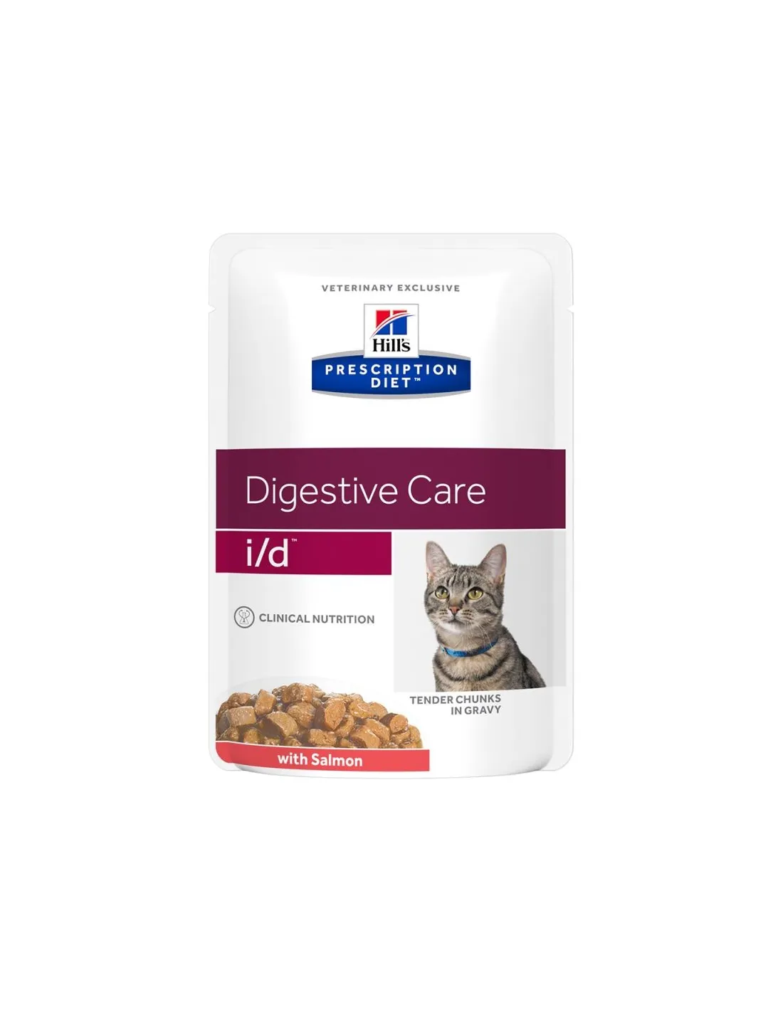 Hill'S Prescription Diet I/D Salmon 85G Sachet For Cats Multipack 12 pieces is a complete dietetic food for cats, formulated to reduce acute intestinal absorption disorders, promote convalescence and compensate for maldigestion and exocrine pancreatic insufficiency.