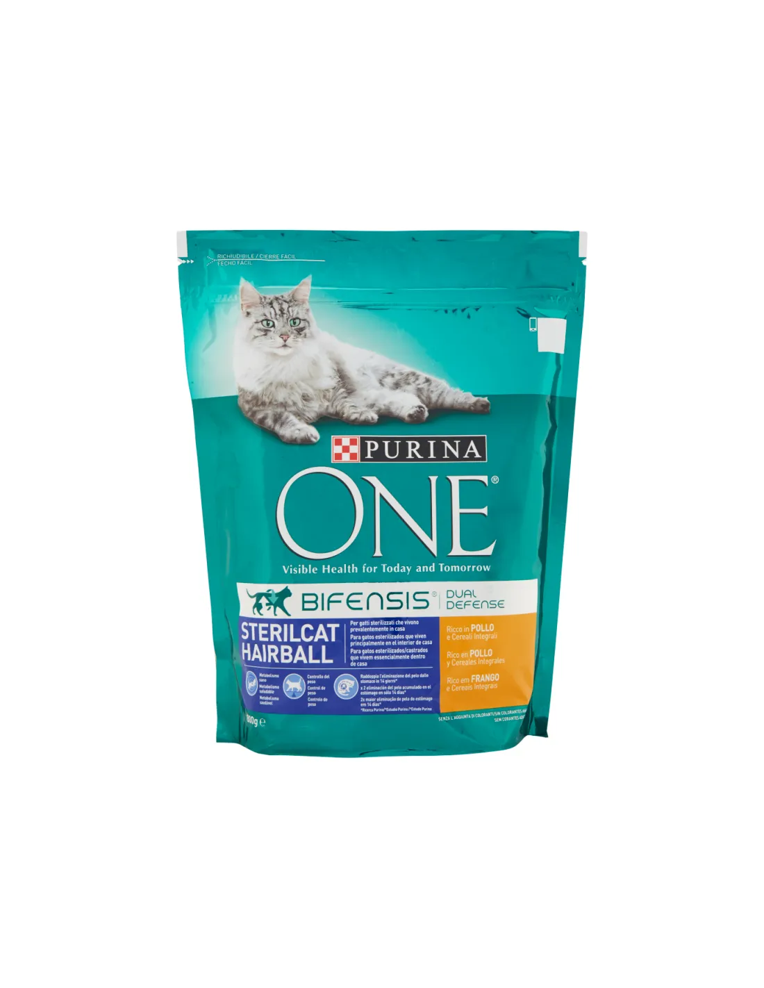 Purina One Sterilcat Chicken and Cereals is indicated for sterilized adult cats. This food helps control body weight thanks to its balanced caloric intake and the presence of fibers which increase the feeling of satiety. Additionally, it supports the health of the urinary system, reducing the risk of urinary diseases common in neutered cats.