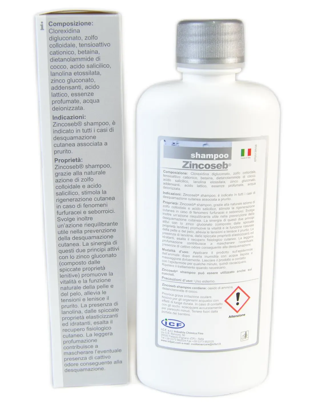 Zincoseb shampoo 250 ml ICF is a specific treatment for the treatment of skin conditions in dogs and cats, characterized by a formula designed to cleanse the skin and combat related skin infections. Its unique composition allows it to act effectively on mycosis, seborrhea and dermatosis, promoting skin well-being and improving the appearance of the hair. Thanks to the presence of targeted active ingredients, the shampoo acts in depth, normalizing sebaceous secretion and reducing the proliferation of pathogenic microorganisms responsible for irritation and inflammation.