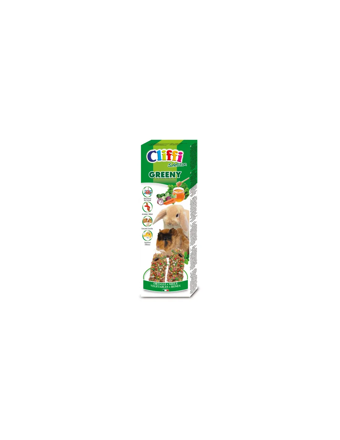 Cliffi sticks rabbits - guinea pigs with vegetables and honey "greeny" 110 gr is a complementary food for dwarf rabbits and pet guinea pigs, with vegetables and honey.