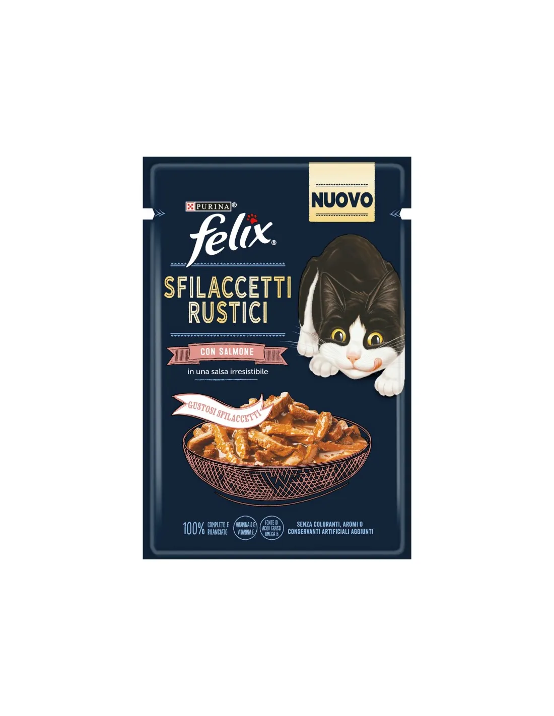 Felix Sfilaccetti Rustici Fish Selection Wet Cat with Tuna and Salmon is a high quality wet cat food. This product has been specially formulated to provide your cat with a balanced and nutritious diet.