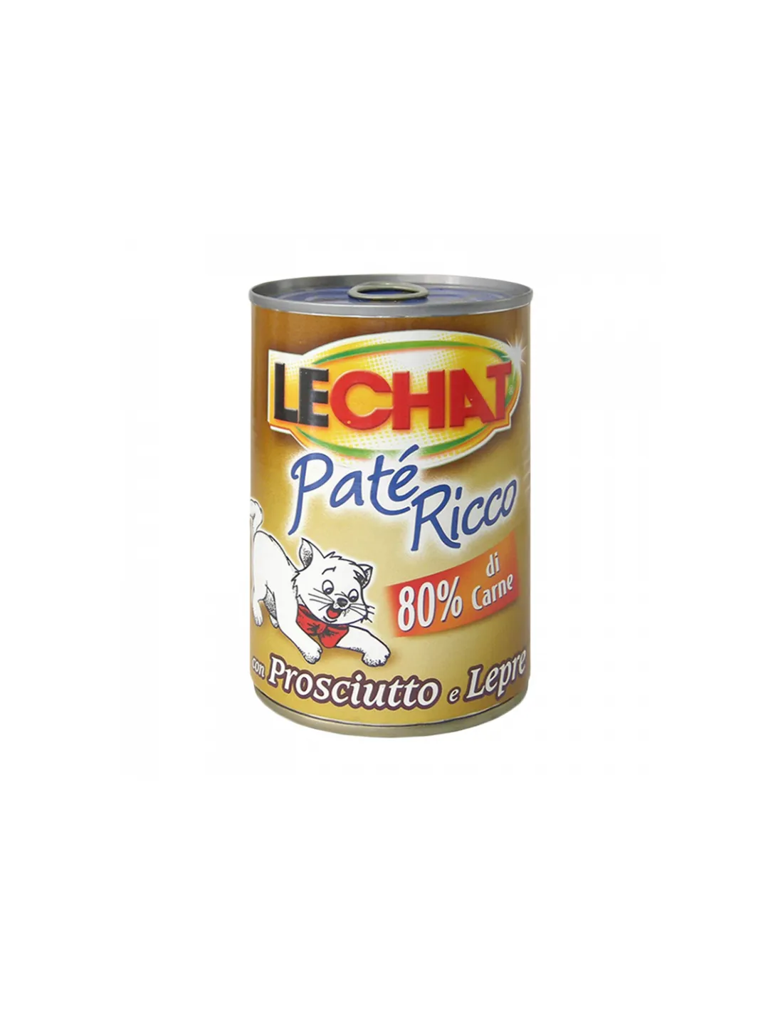 Produced entirely in Italy, LeChat Adult Paté with Ham and Hare complies with rigorous production standards and is not tested on animals, reflecting an ethic of respect and care towards all living beings.