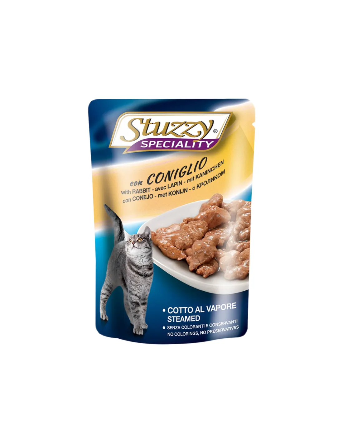 Stuzzy Cat presents Sfilaccetti with Rabbit, a complete and balanced food for adult cats. These slices are prepared with slow cooking which enhances their flavor and digestibility. Made with natural ingredients, including 10% rabbit meat, they offer a unique tasting experience and are ideal for feeding your cat a meal that is as healthy as it is delicious.