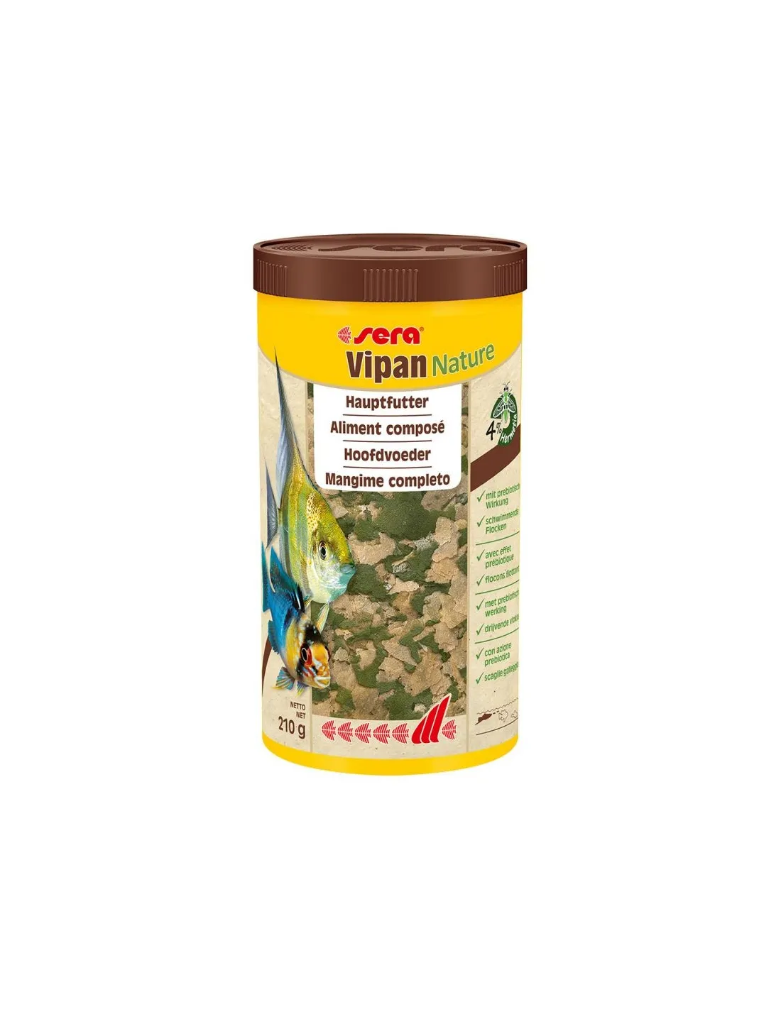 Sera Vipan Nature Flake Food 250 ml 60 g represents a natural evolution in the field of aquarium fish nutrition. This feed line, Sera Nature, was developed to make fish feeding even closer to their natural diet. Unlike traditional food, Sera Vipan Nature is free of artificial colors and preservatives. The color of the scales comes exclusively from natural ingredients such as Haematococcus algae, known for its nutritional benefits.