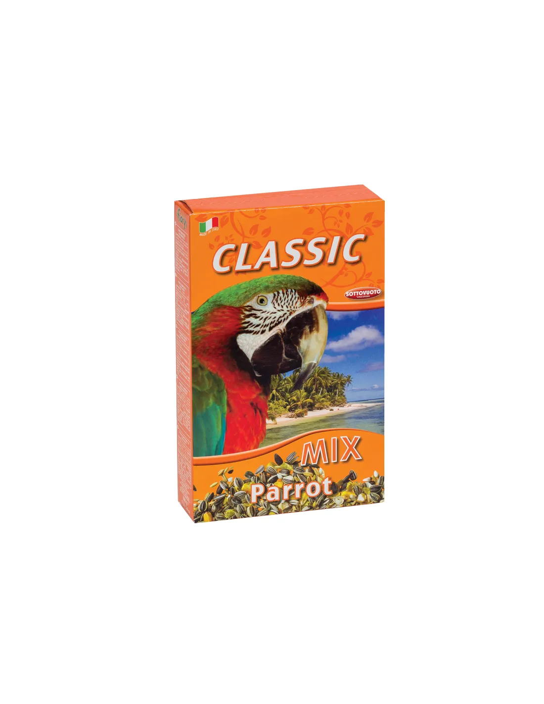 The "FIORY CLASSIC MIX PARROT PARROT GR.600" is a high quality food for parrots. This seed mix has been specially formulated to provide a varied and nutritious diet for your parrots. Contains twelve different types of seeds, including pumpkin seeds, which are known for their refreshing and diuretic properties, as well as being rich in vitamins A, B, C and calcium, phosphorus and iron.