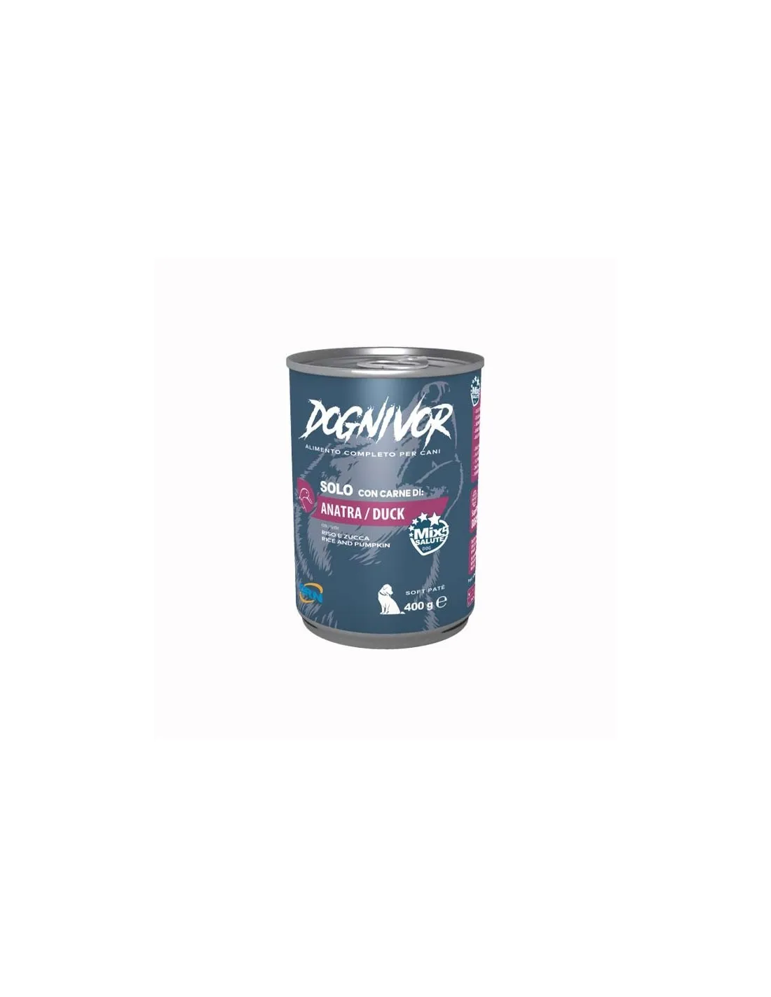 The product comes in a practical 400 gram can, ideal for guaranteeing the freshness of the product and its easy conservation. Drn Dognivor Duck Rice and Pumpkin pate' is soft and easily digestible, suitable for dogs of all breeds and sizes.