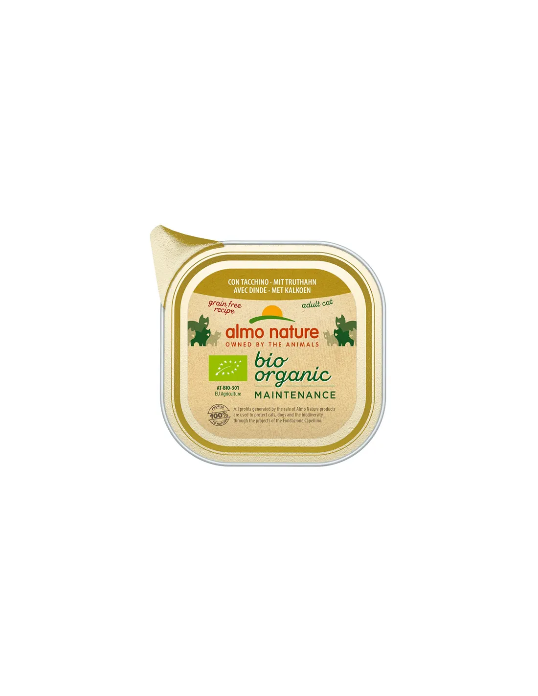 Almo Cat Biorganic 85 Gr Turkey is indicated for the daily feeding of cats of all ages who need a diet rich in high quality animal proteins and organic ingredients. This product is particularly suitable for cats with food sensitivity problems or who require a more natural diet, free of harmful chemicals such as colourants, artificial preservatives or synthetic flavours.