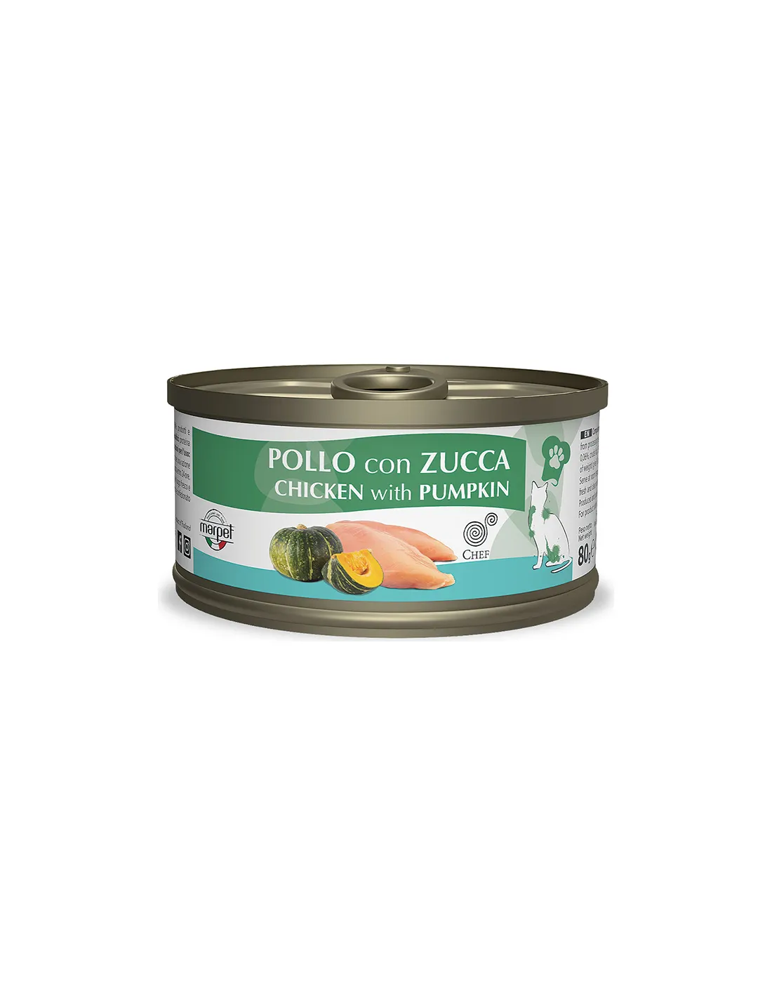 Equilibria Chef Chicken Zucca 80 gr is designed as a complementary or complete food for dogs of all ages and sizes, with particular attention to those who need an easily digestible diet rich in natural fibres. The presence of pumpkin makes this product particularly suitable for dogs with digestive problems or who need support for intestinal regularity.