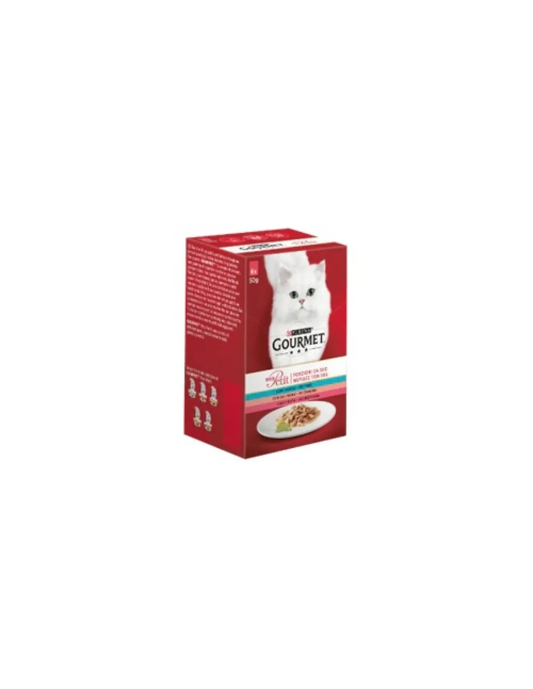 The composition of Purina Gourmet Mon Petit Wet Cat with Tuna, Salmon and Trout has been carefully studied to offer a superior quality food. Each sachet contains ingredients selected for their nutritional value and palatability. The meat and derivatives used are of controlled origin, while the fish and fish by-products come from sustainable sources and are rich in Omega-3 fatty acids, beneficial for cardiovascular health and for the shine of the coat.