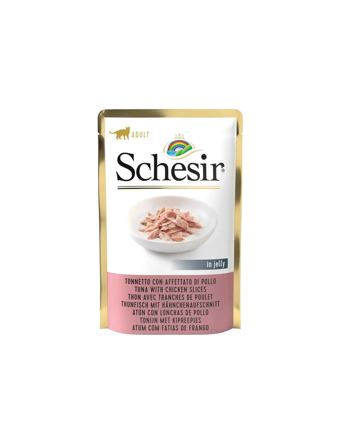 Store Schesir Gatto Tuna and Chicken in a cool, dry place, away from direct sunlight. Once opened, it is advisable to store the product in the refrigerator and use it within 48 hours. Be sure to handle food hygienically and wash your hands after use. Do not feed the product if it appears damaged or if the food does not appear fresh.