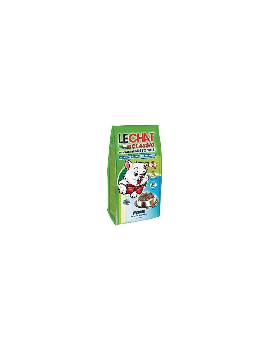 Monge LeChat Classic Croccantini Gusto Tris 20 kg is a complete food for cats that combines red meat, white meat and fish, providing a balanced and tasty meal for all types of cats. This product is ideal for daily consumption thanks to its rich nutritional composition and its high quality ingredients.
