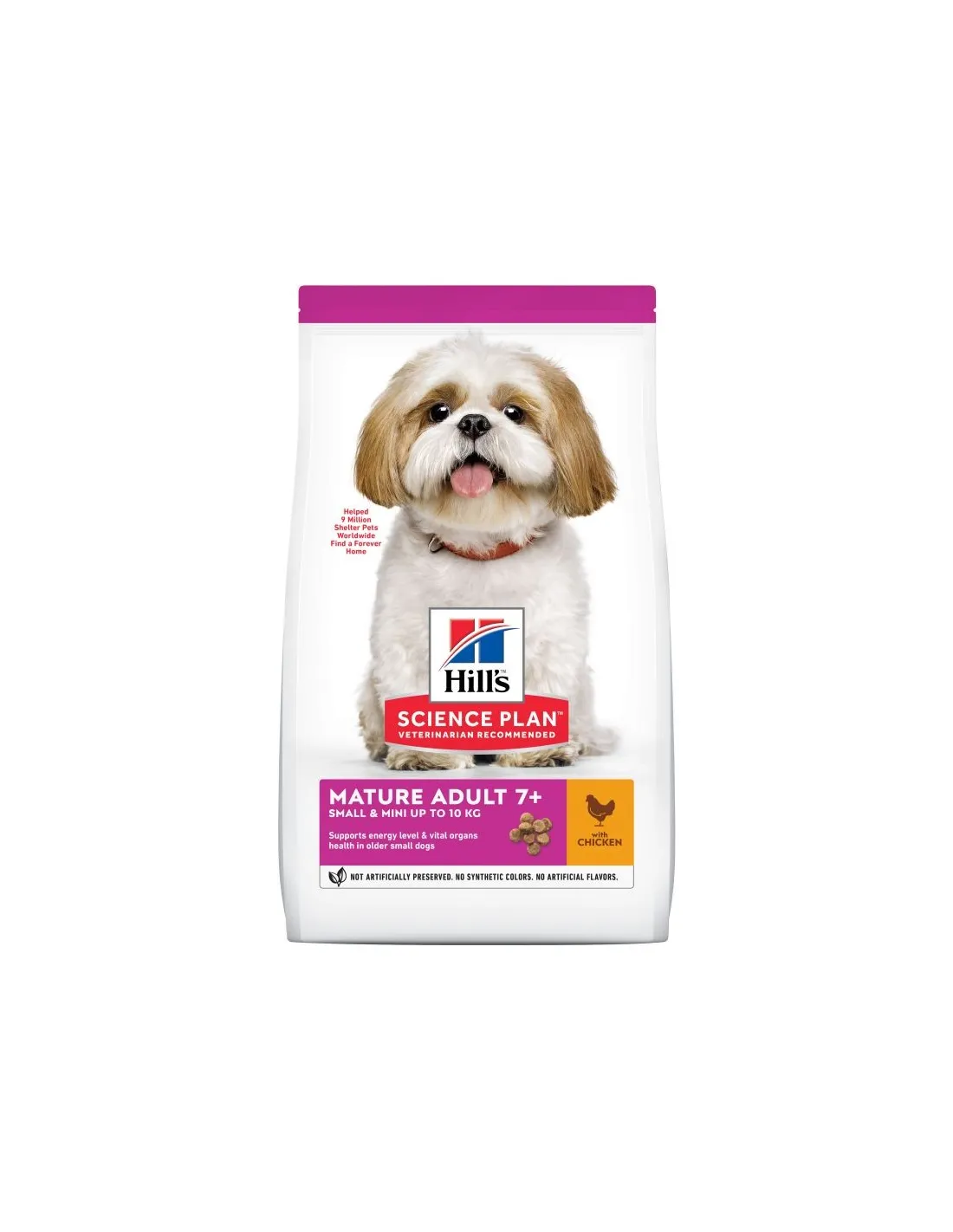 Hill's Science Plan Small & Mini Mature Adult 7+ Dog Food with Chicken is suitable for small dogs over 7 years of age. This food is ideal for maintaining ideal weight and supporting healthy aging. The formula is specifically balanced to meet the energy needs of older dogs, who tend to be less active.