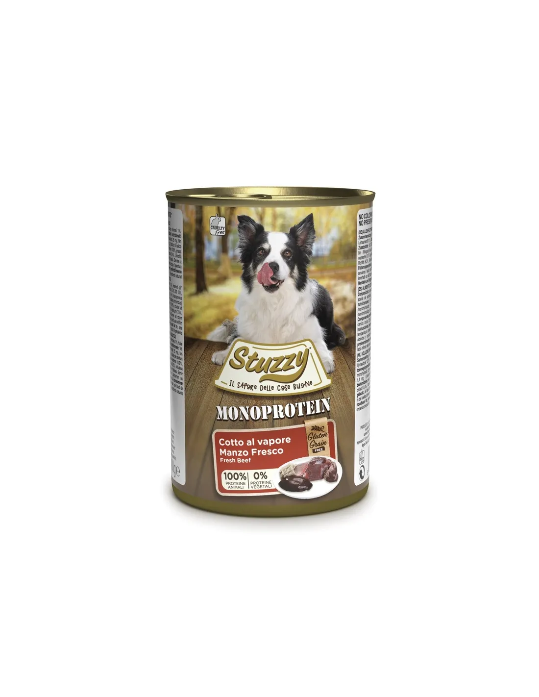 Stuzzy Dog Monoprotein is a complete, high quality wet food for adult dogs, which stands out for its excellent digestibility and irresistible taste that conquers even the most demanding palates. Its unique formula has been carefully designed to offer a balanced and nutritious diet, thanks to the exclusive use of 100% animal proteins. Steam cooking is the secret behind the optimal preservation of nutrients and authentic flavour, making every meal a moment of pure pleasure for your faithful four-legged friend.
