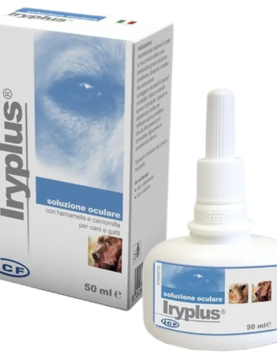 Eye cleanser for dogs and cats. Isotonic solution, containing sodium and potassium ions in the same ratio as tear fluid, physiological pH, viscosity and humidity. Painless removal of crusts and dry mucus from the area around the eyes thanks to the emollient, hydrating and soothing action of the components. The light viscosity of iryplus facilitates its use, avoiding product waste. Iryplus is also characterized by its effective protective action due to the presence of chlorhexidine digluconate and benzalkonium chloride.