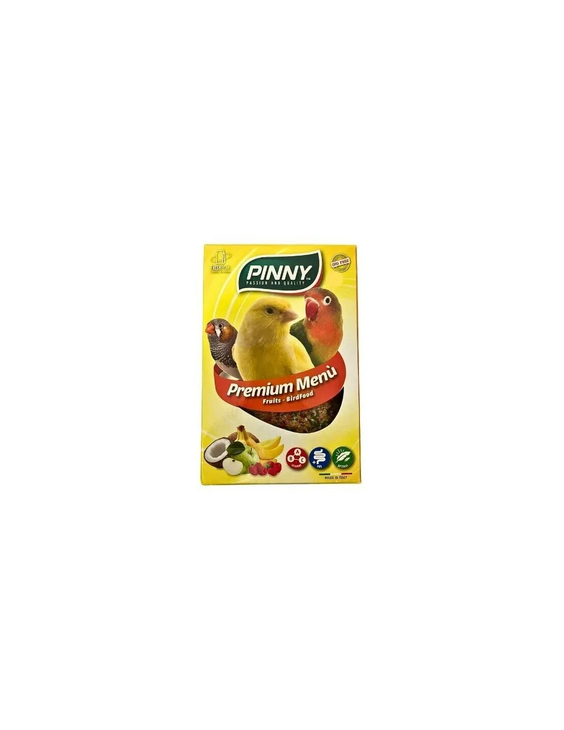 The "Pinny PREMIUM MENU fruits birdfood" and "Pinny Pastoncino Fruits 350 gr" can be fed daily as an integral part of the birds' diet. They can be offered alone or mixed with other seeds and bird foods to further enrich the diet.