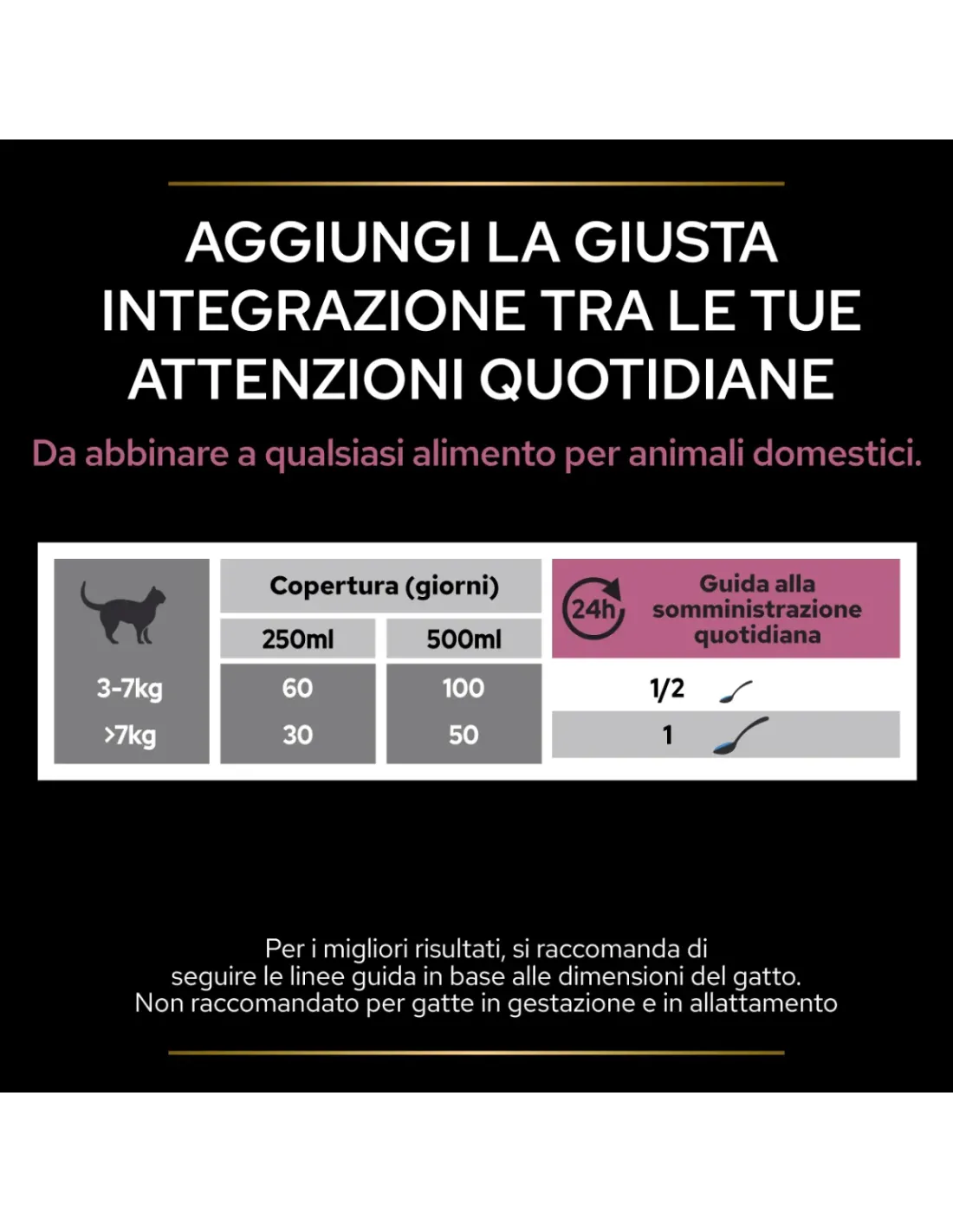 Pro Plan Supplements Skin & Coat + is a complementary food for adult cats of all sizes that nourishes your cat's skin and coat completely because it contains essential nutrients such as Omega-3 and Omega-6 fatty acids from Norwegian salmon, flaxseed oil and vitamin E.