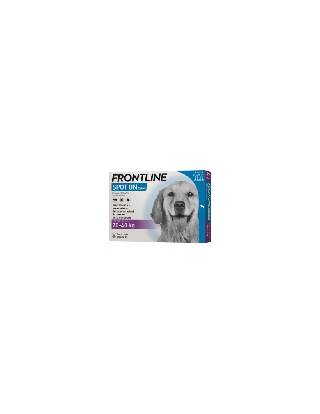 FRONTLINE® Spot-On Dogs is an anti-parasitic solution in spot-on form for dogs. Easy to apply, thanks to the active ingredient Fipronil it protects dogs and puppies from ticks, fleas and lice and carries out a protective action against new infestations.