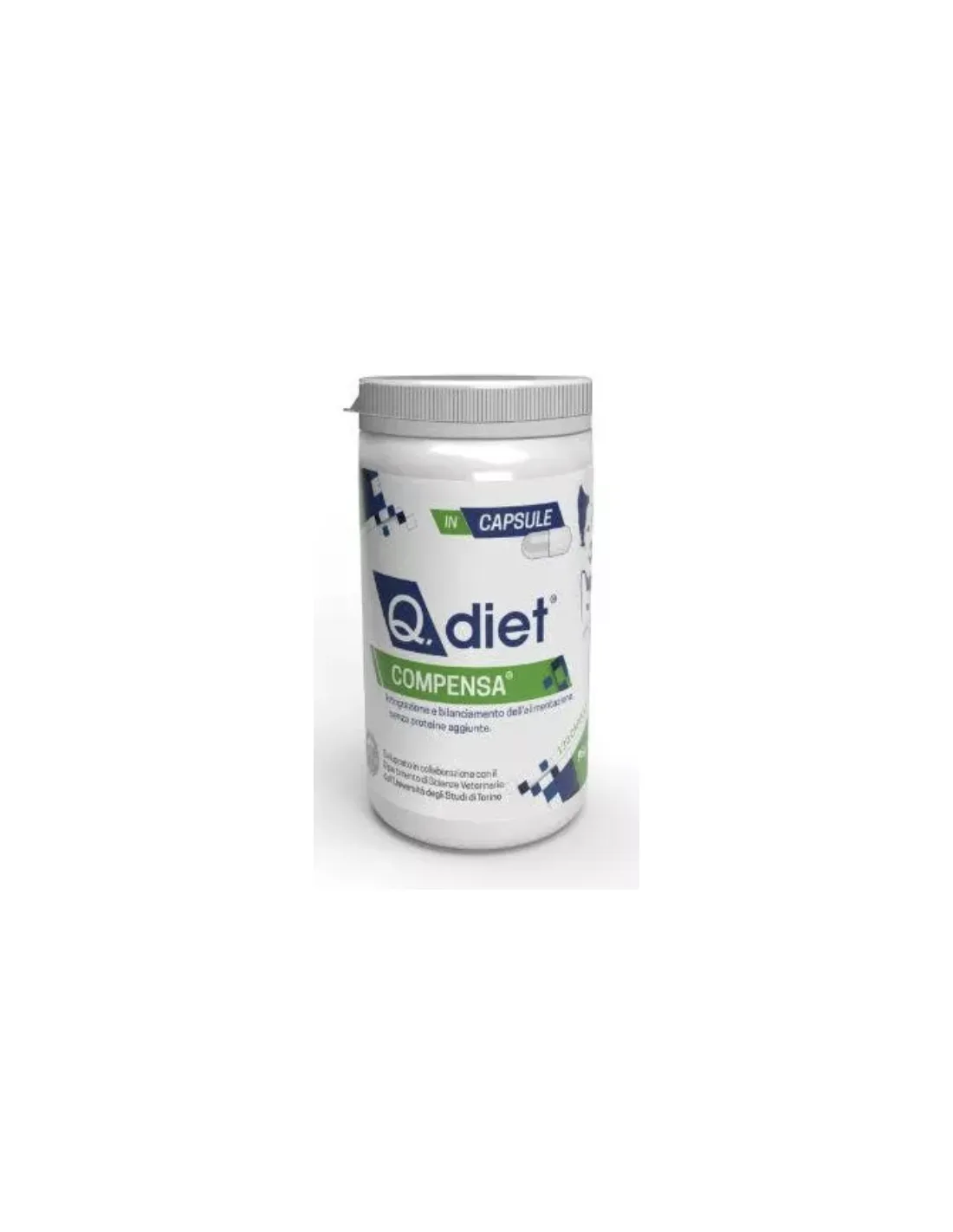 Q.Vet Q. Diet Compensa is a food supplement in capsules, designed to provide complete nutritional support to both dogs and cats. Packaged in a practical container of 120 capsules, this supplement is ideal for compensating for any nutritional deficiencies that may occur in home or special diets, such as elimination ones.