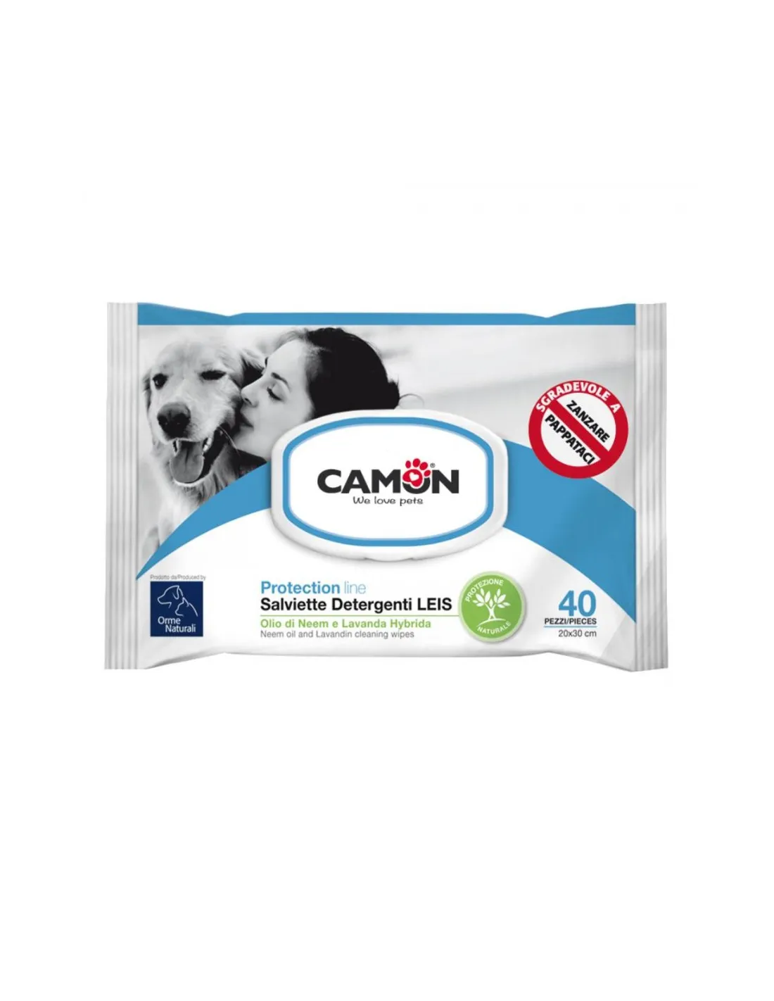 Camon protection line cleansing wipes leis 40 wipes 30 cm g907 are very practical cleansing wipes for your pet, to always keep on hand: at home and when travelling, to clean the fur and paws, remove bad smells, clean the muzzle and ears.