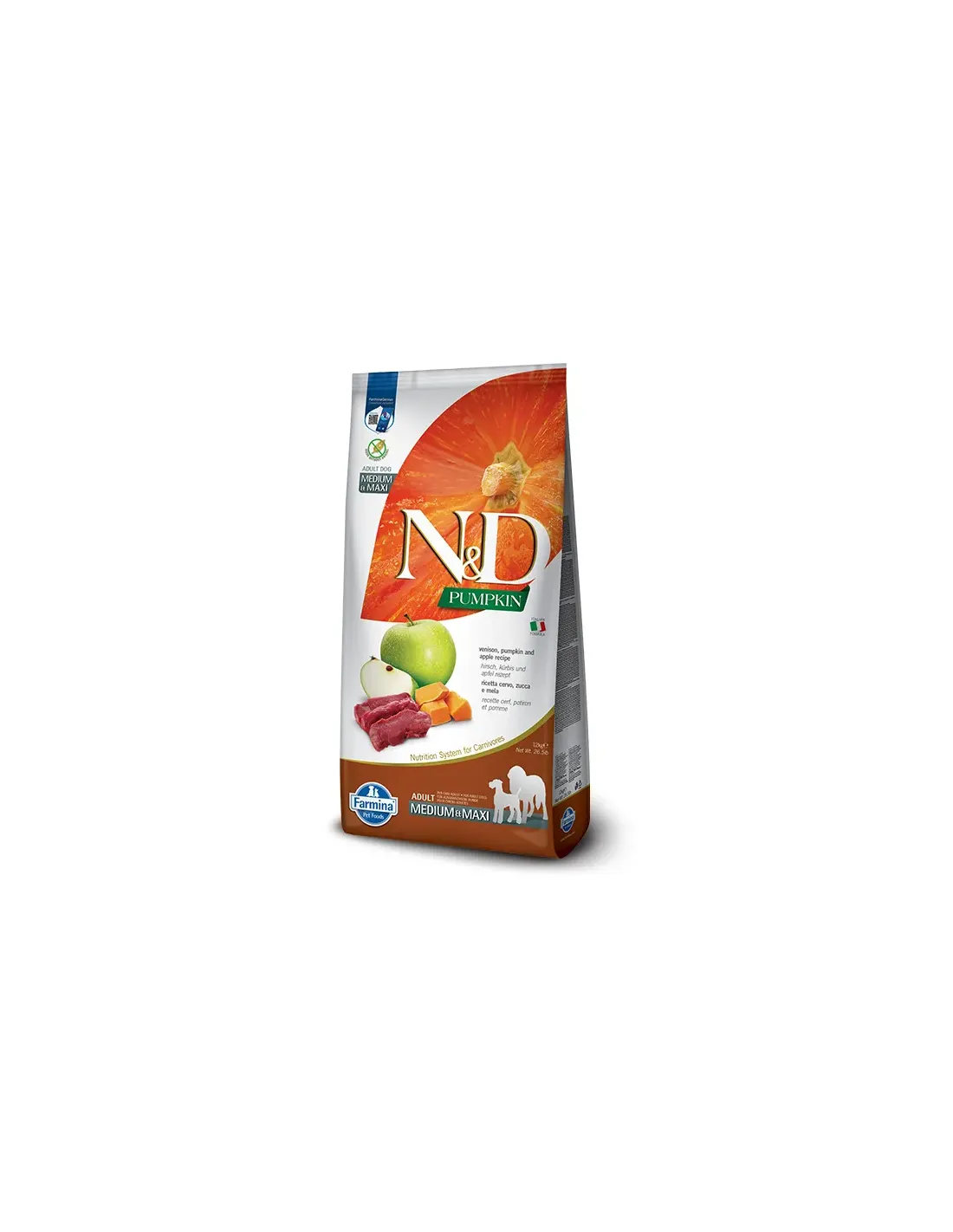 Farmina N&D Pumpkin Adult Medium Maxi Venison Pumpkin Apple is a premium dry food for medium and large adult dogs. This unique formula combines high-quality ingredients such as venison, pumpkin and apple to provide a nutritious and tasty meal. The 12 kg bag ensures a long-lasting supply for your faithful four-legged friend.