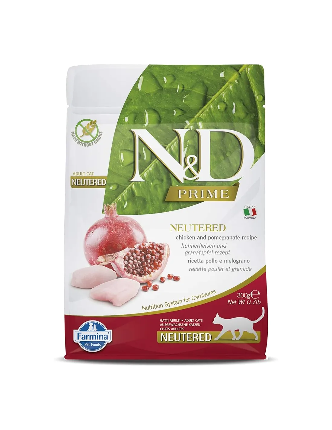 Farmina n&d prime cat chicken and pomegranate 300 gr is a complete food for adult cats.