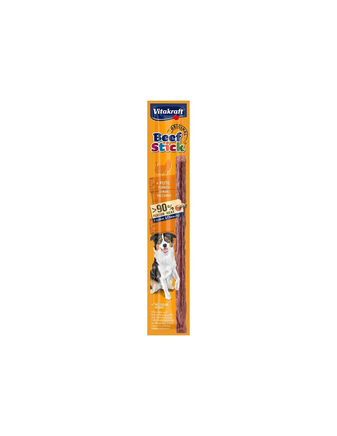Turkey flavored Vitakraft Beef Stick can be given to your dog as a reward or as a between-meal snack. Thanks to its freshness-saving packaging, each stick retains its flavor and freshness until consumed.