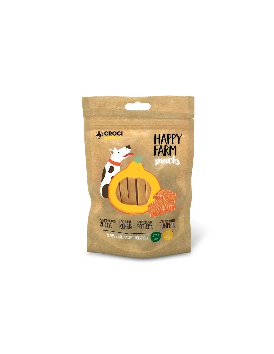 Happy Farm Snacks Salmon with pumpkin is a delicious dog snack, ideal for rewarding your four-legged friend during the day. This snack is made with high-quality ingredients, including salmon and pumpkin, to ensure an irresistible taste and balanced nutrition.