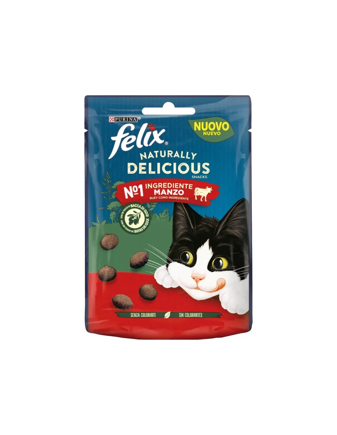 Il "Purina Felix Naturally Delicious Snack Gatti con Pollo e un Tocco di Erba Gatta" è un'opzione alimentare irresistibile per il tuo amico felino. Questo snack è stato attentamente formulato per soddisfare i palati più esigenti, offrendo un sapore autentico di pollo arricchito da un delicato tocco di erba gatta. Ogni confezione contiene 8 buste da 50 grammi, ideali per premiare il tuo gatto o semplicemente per offrirgli un gustoso spuntino tra un pasto e l'altro.