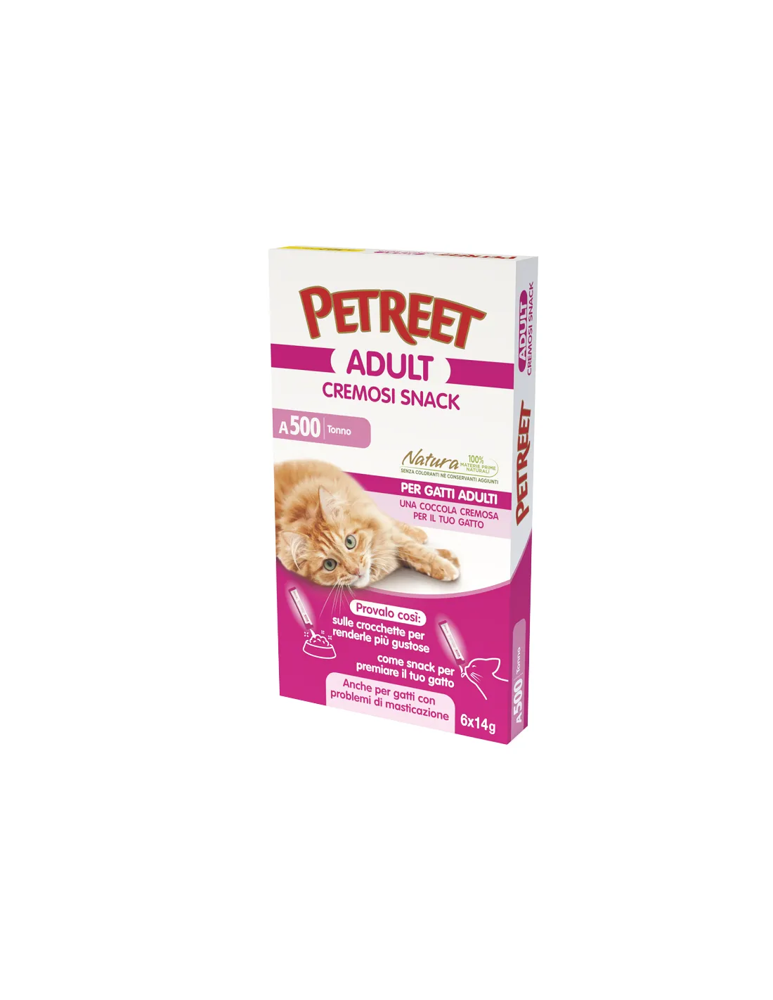 The benefits of Petreet Cremosi Snack go beyond the simple pleasure of taste. Their creamy consistency is particularly suitable for elderly cats or those with chewing problems, making food intake easier and contributing to the general well-being of your cat. Furthermore, the use of high-quality ingredients such as yellowfin tuna provides a valuable nutritional contribution, enriching your cat's diet with quality proteins and essential fatty acids.