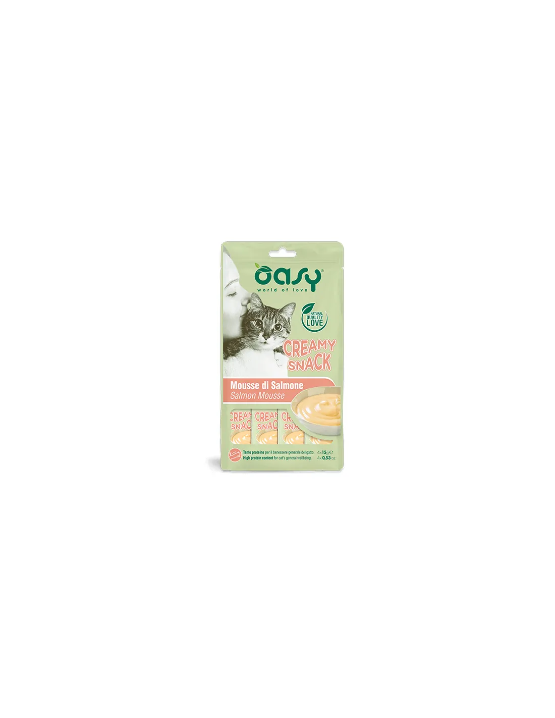 Easy to administer, OASY - Creamy Snack Salmon can be given directly from the package or added as a tasty topping to the cat's usual food, thus stimulating the appetite of more demanding animals or those with a reduced sense of smell.